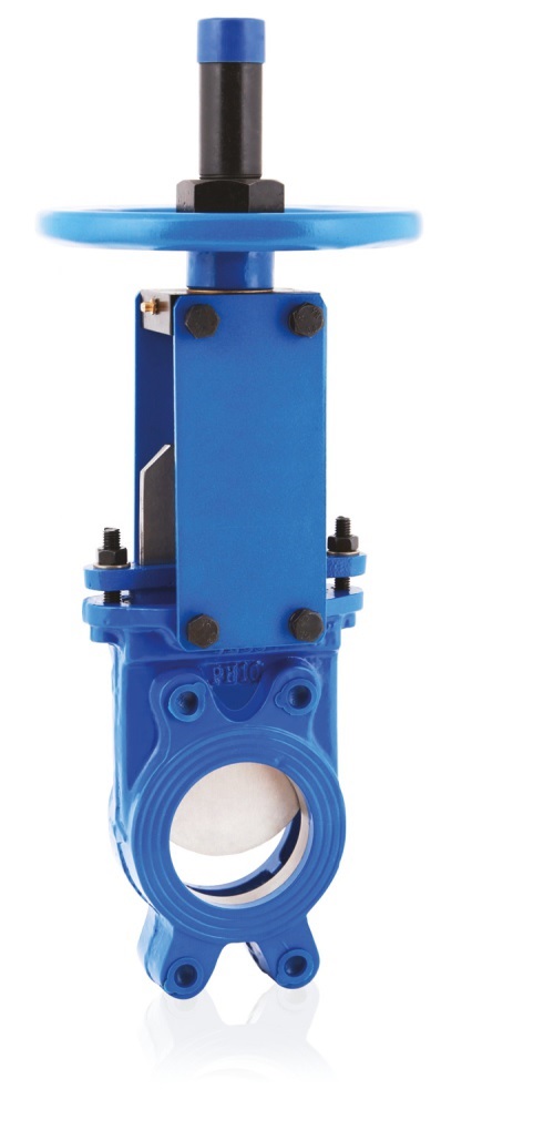 Korpus: żeliwo sferoidalne GGG40 Nóż: stal nierdzewna AISI 304 Uszczelnienie: NBR Napęd: kółko ręczne Przyłącze: międzykołnierzowe PN10